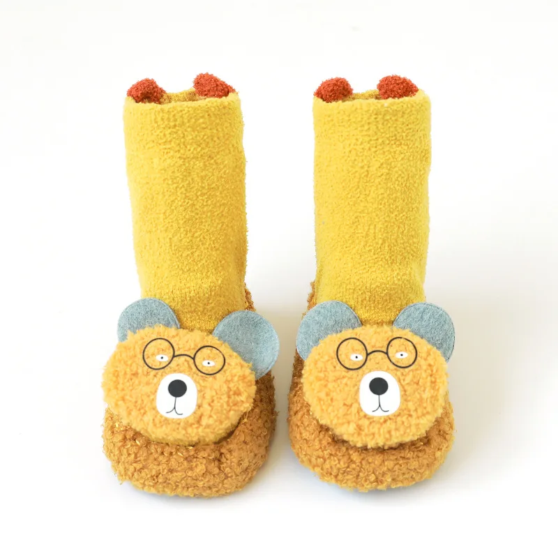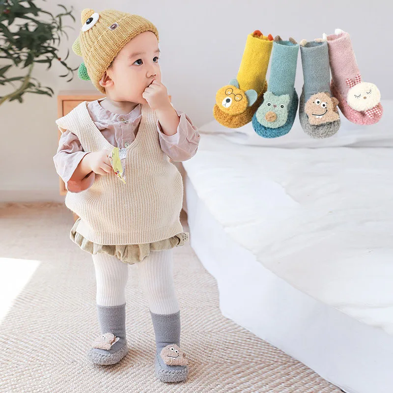 Des chaussons chaussettes montantes avec des petits animaux en peluche sur le dessus du pied, tout coloré pour l’éveil de bébé. Le protéger du froid tout en l’amusant c’est possible avec ces chaussons chaussettes.